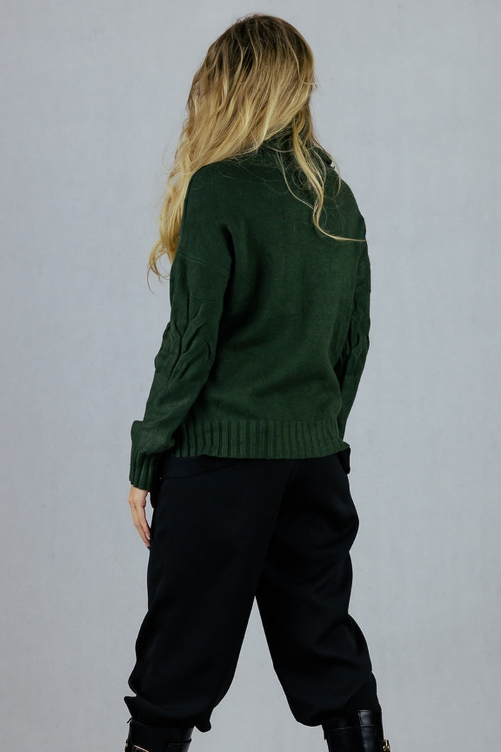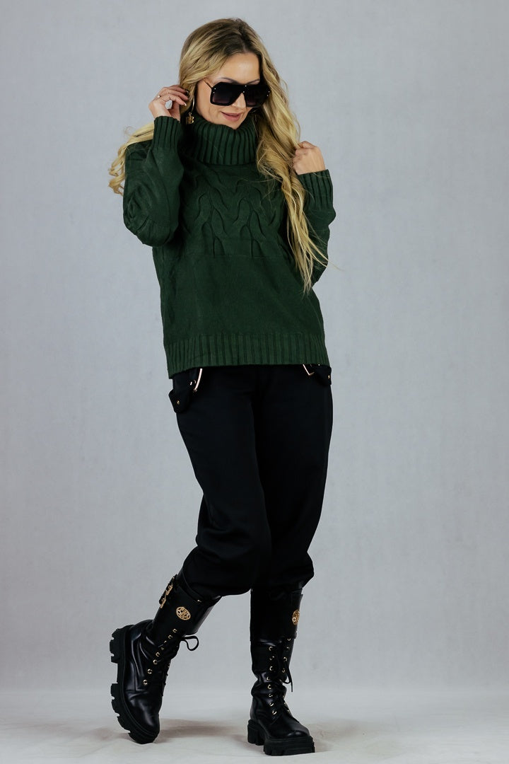 Mięsisty sweter z golfem i warkoczowym splotem.