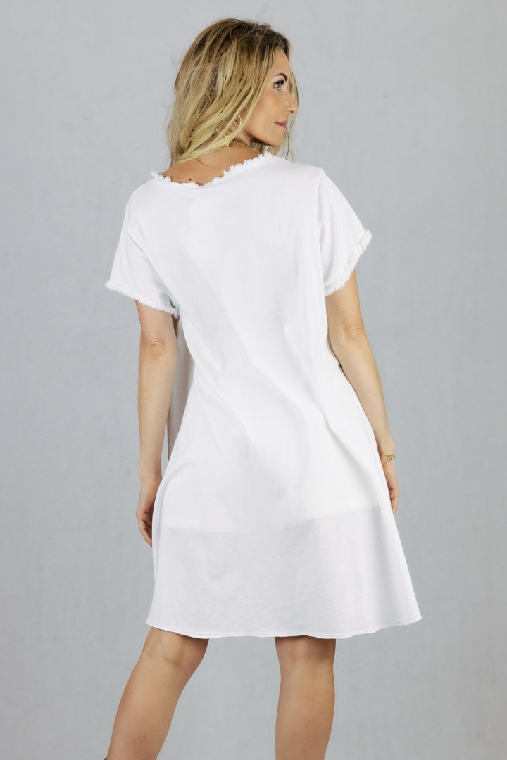 Bawełniana asymetryczna tunika z aplikacją.