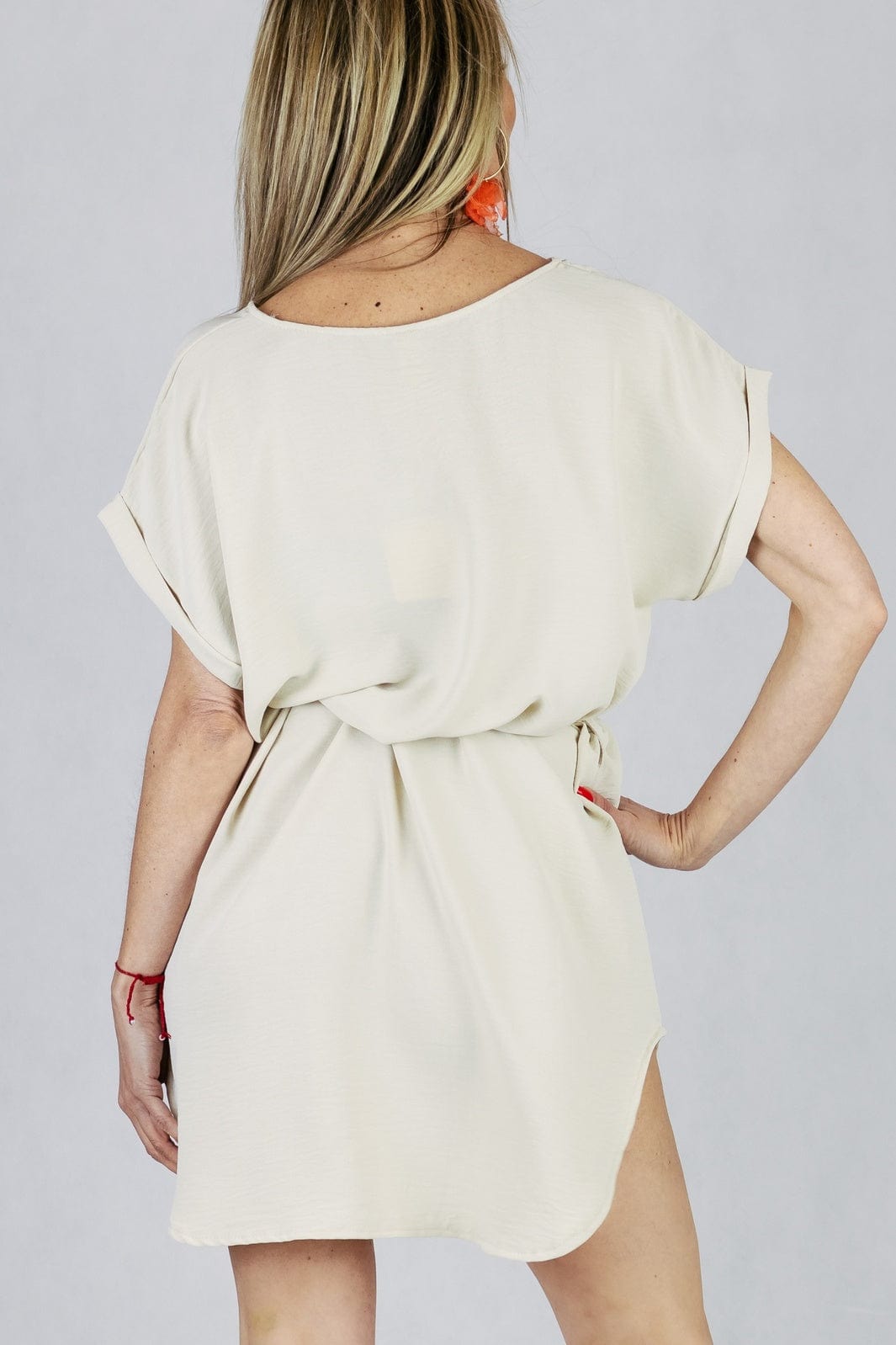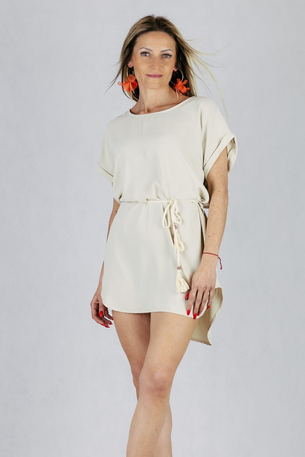 Tunika z plecionym paskiem - beżowa
